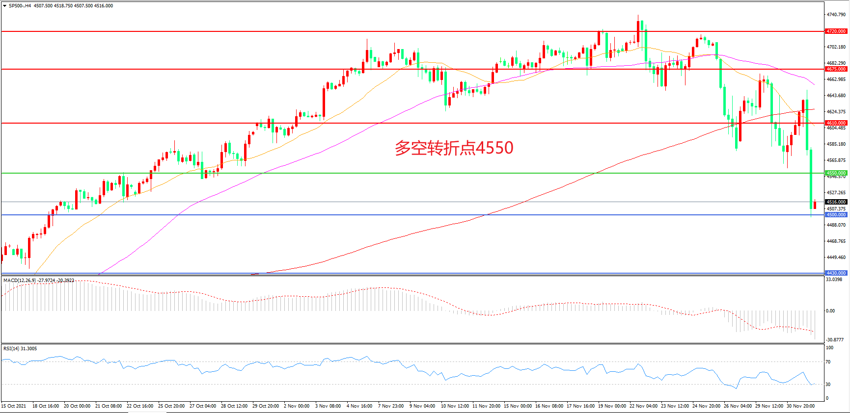 交易策略:在4550.00之下看跌,目标4500.00    4430.00