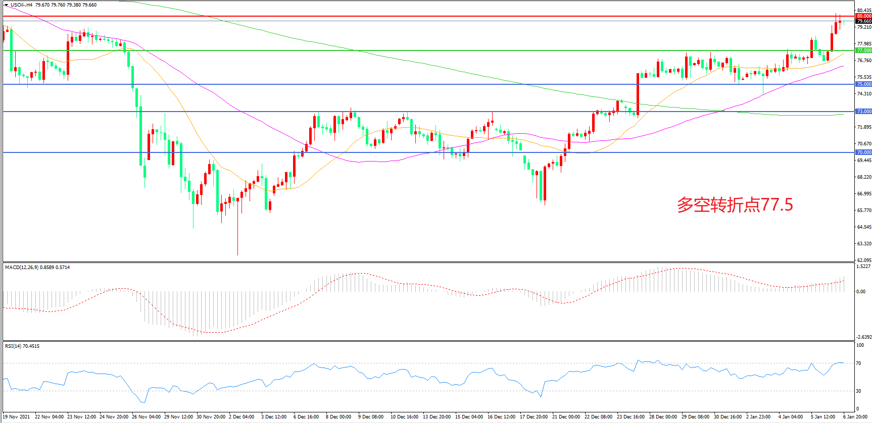 多空转折点:77.50