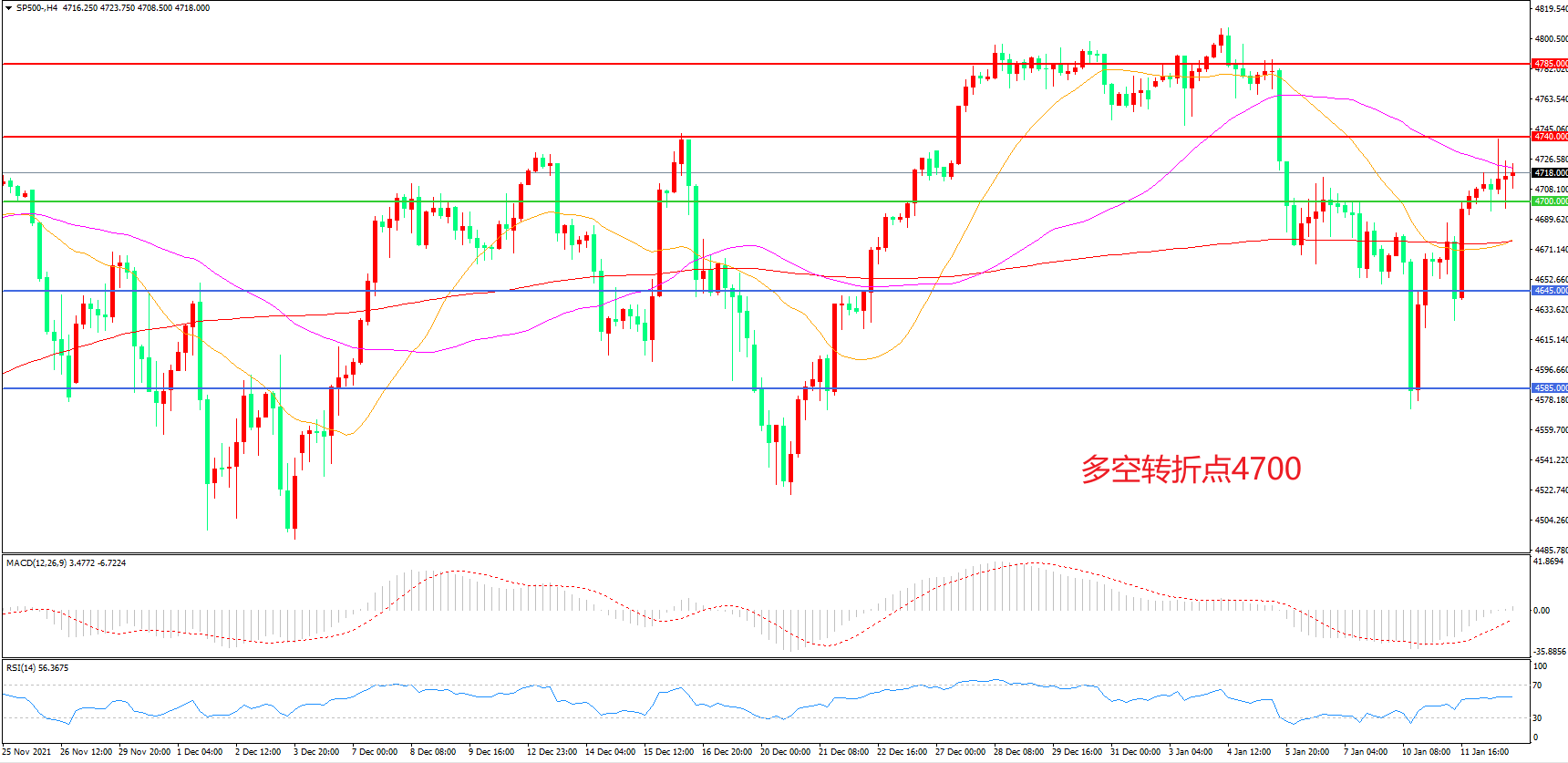 周三(1月12日),美国12月CPI同比增长7%再创将近四十年最高增速,居高不下且覆盖范围广泛的通胀水平为美联储加快撤除宽松铺平道路,美元指数再度回落,标普500小幅拉升,收报4718.50点。目前多空博弈十分胶着,四季度财报表现将成为市场关心的重点,务必关心本周五各大投行公布的财报表现。