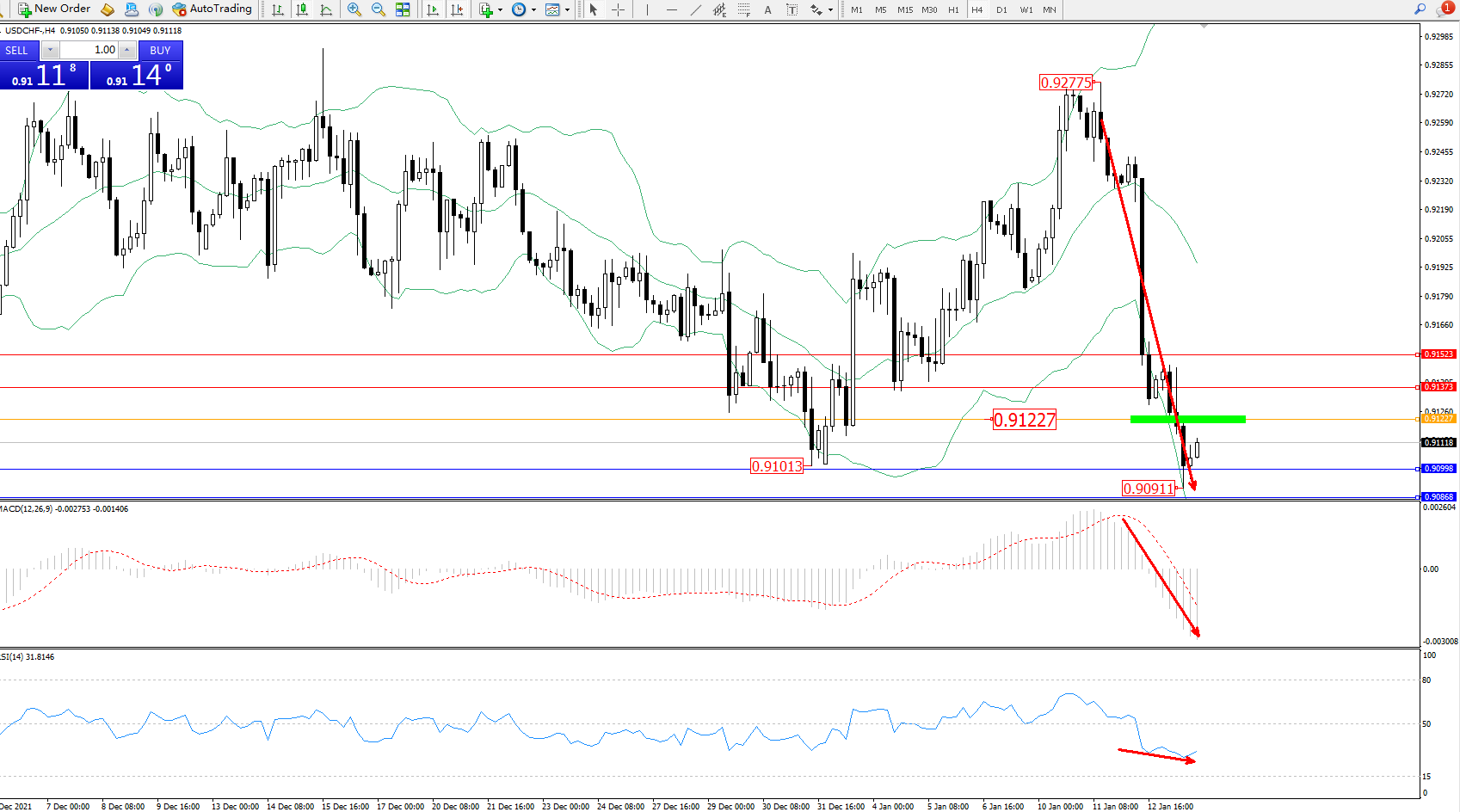 交易策略:0.91227下方看跌,目标0.90998、0.90868