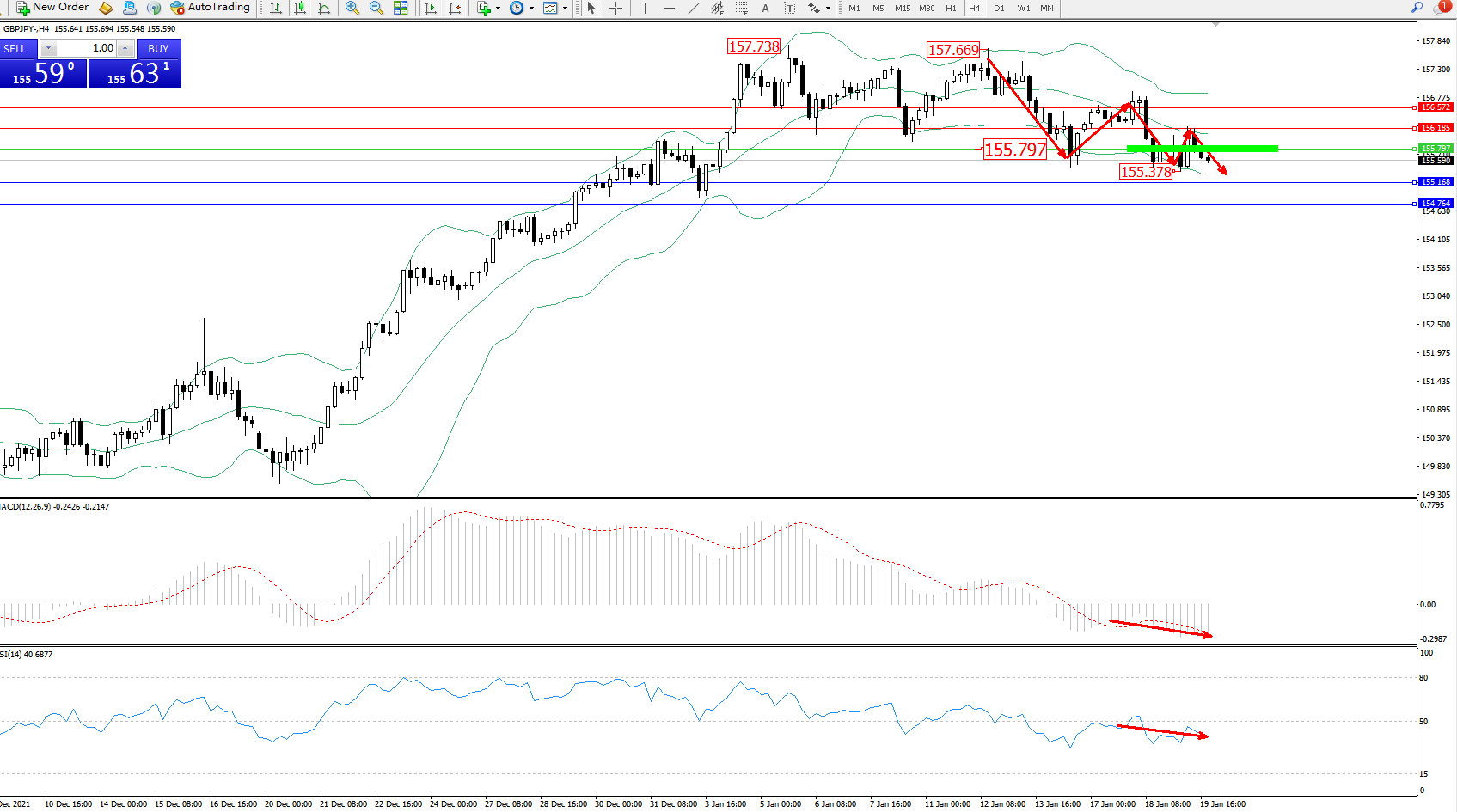 技术点评:空头动力延续布林带指标通道中下轨区间持续震荡下行,低位抵达155.378位置后得到支撑震荡,短期空头下行趋势态势良好,布林带指标呈平缓向下移动走势持续中,MACD指标处于0轴线下方不断震荡中,RSI指标处于50均衡线下侧窄幅震荡;