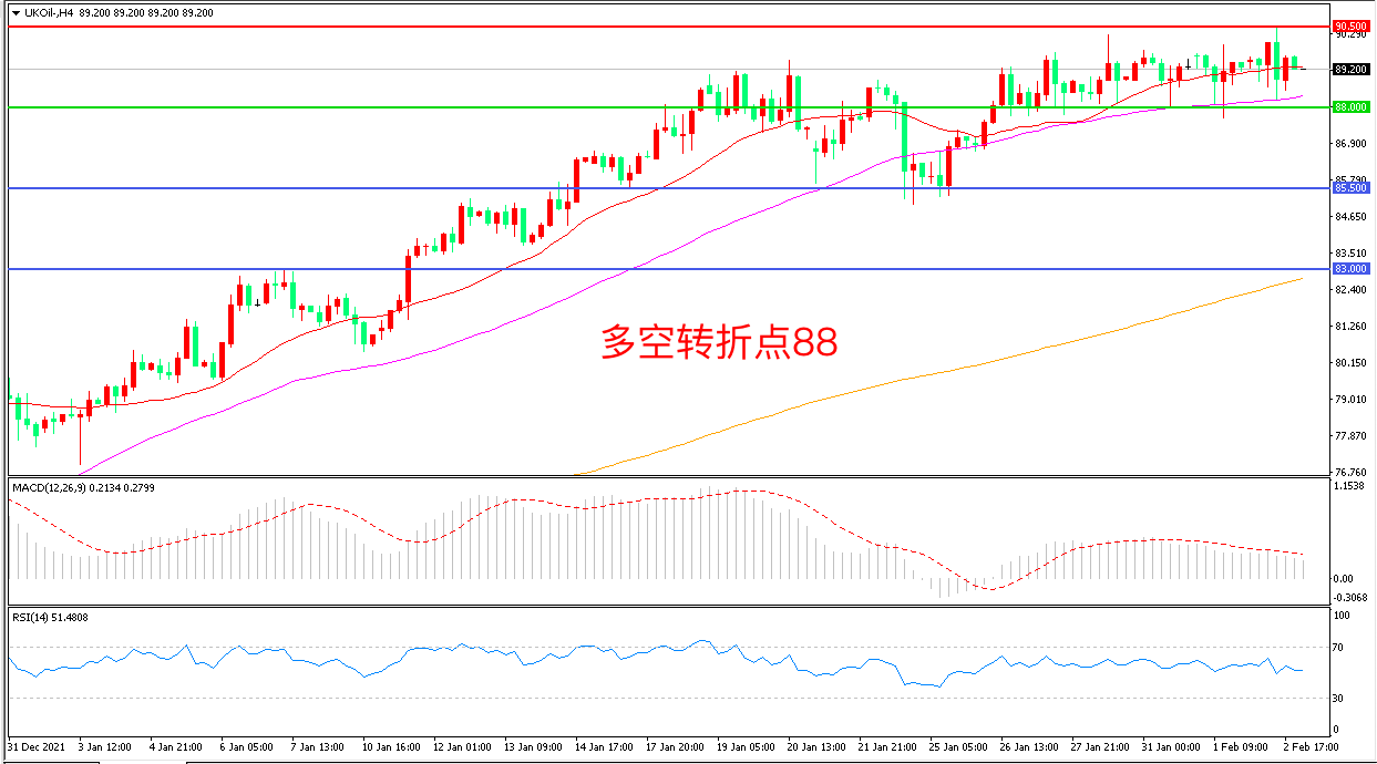交易策略:在88.00之上看涨,目标90.50                93.00