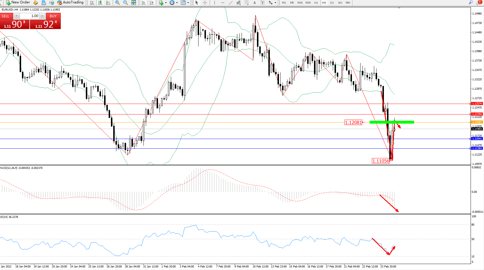 交易策略:1.12081下方看跌,目标1.11641、1.11383