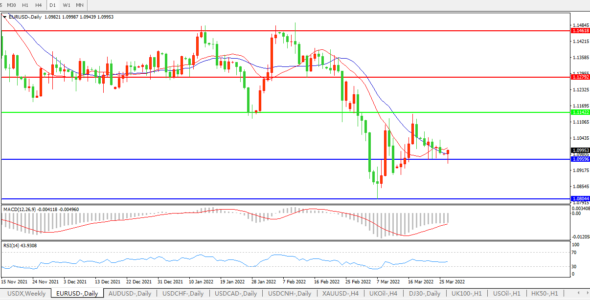 欧元兑美元小幅上涨0.02%,至1.0986,稍早一度触及1.0945,为3月15日以来最低;俄罗斯对乌克兰的意图及其对东欧的经济影响继续拖累欧元。欧元本周的命运可能取决于欧洲主要经济体的通胀数据,欧元区消费者物价调和指数(HICP)预计将在3月份小幅升至6.5%。