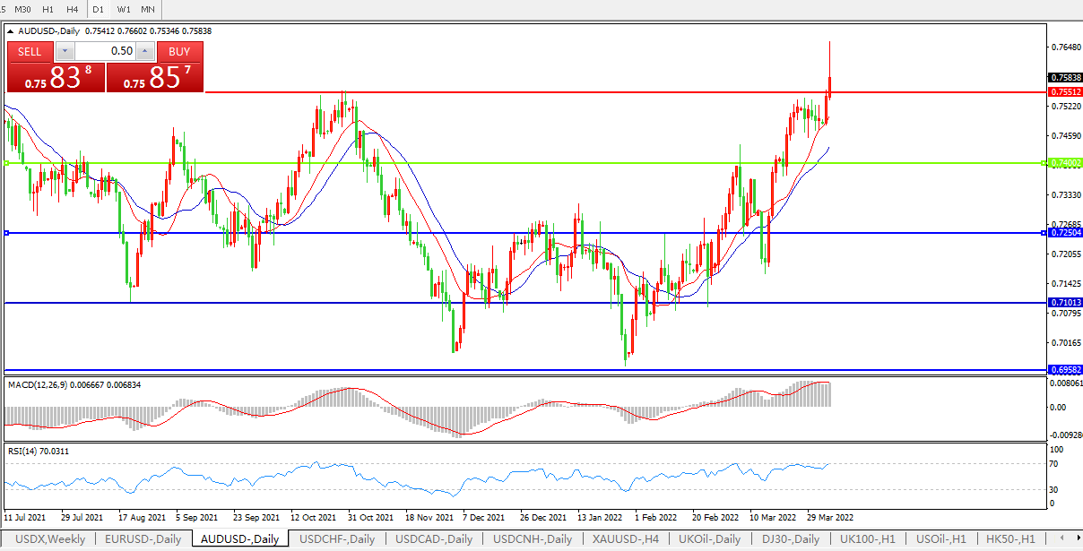 压制位:0.7550 0.7650
