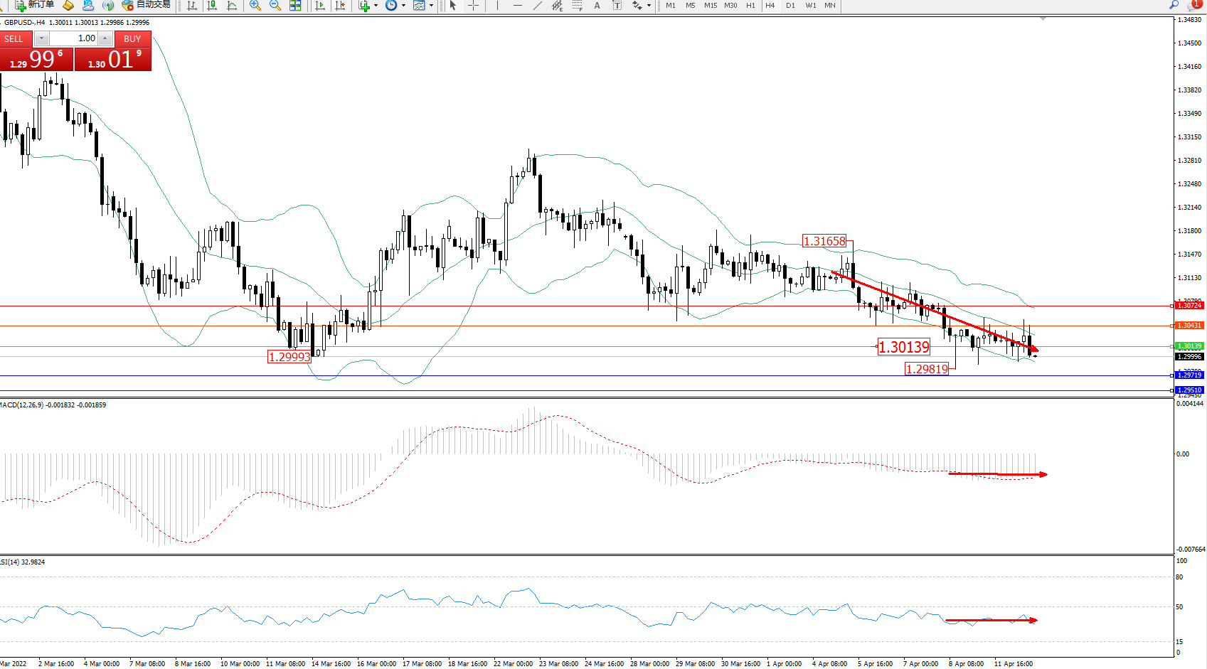 英镑美元GBPUSD ——4小时K线图显示: