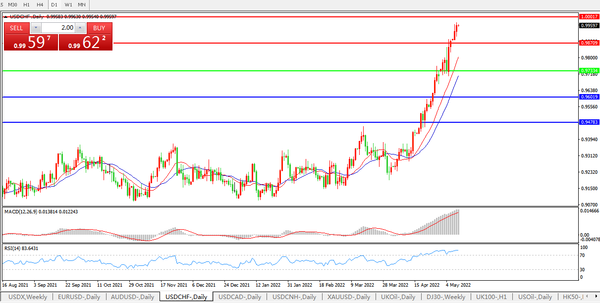 联储官员持续放鹰,美元兑瑞郎继续冲高