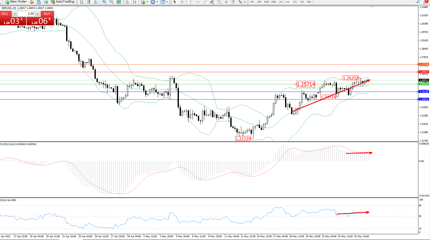 交易策略:1.25714上方看涨,目标1.26652、1.27238
