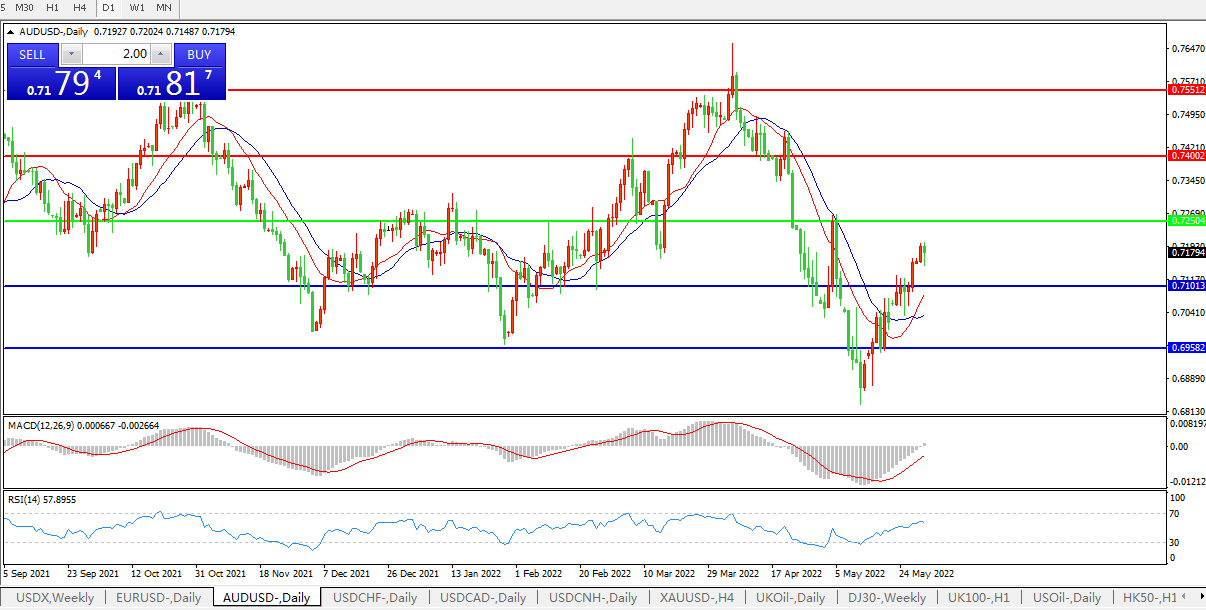 交易策略:0.7250下方看跌,目标0.71000.6950