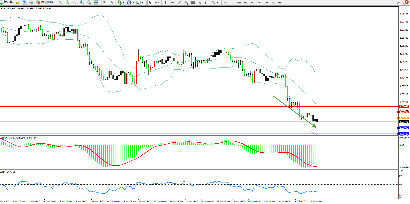 交易策略:1.01708下方看跌,目标1.01096、1.00730