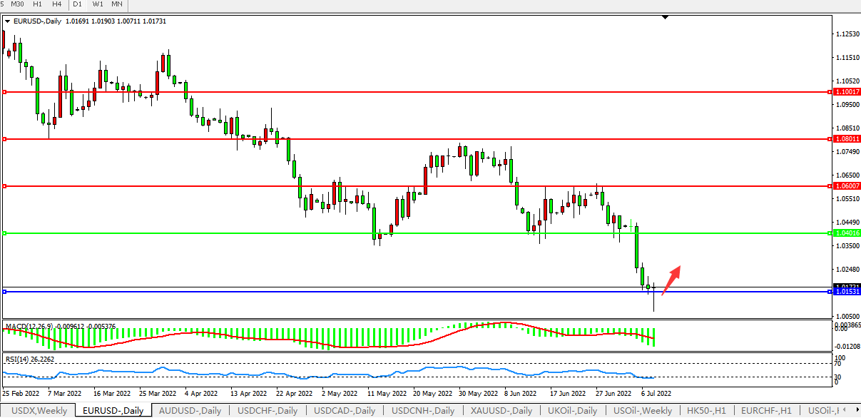 交易策略:1.0400下方看跌,目标1.0150、1.0000