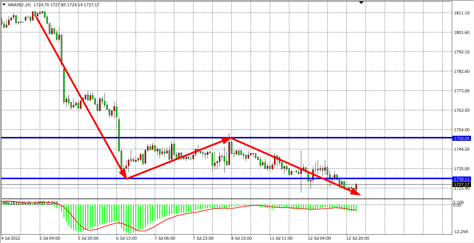 交易策略:在1730.00之下看跌,目标1720.00          1700.00