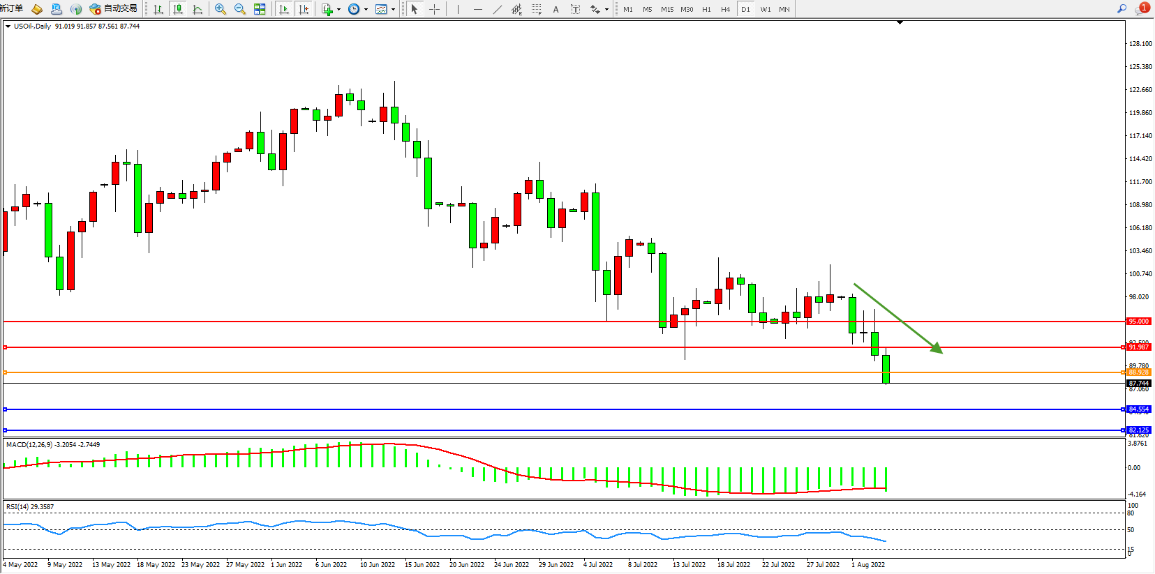 美油:低位空头不断下移 USOil   UKOil