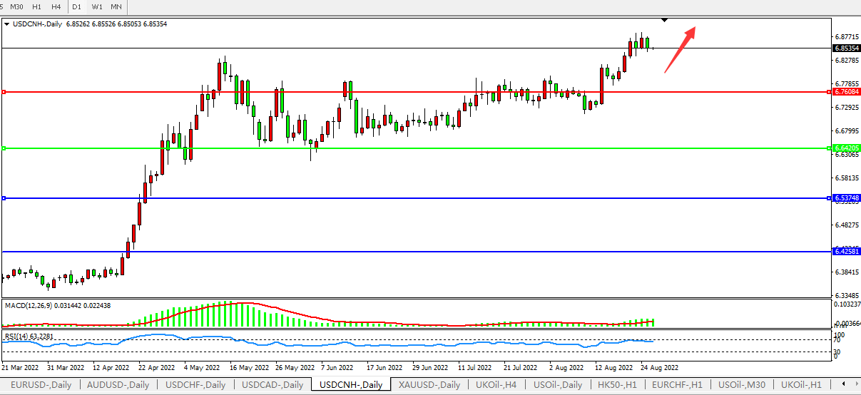 交易策略:在6.6420之上,看涨,目标价位为6.7600、6.8870