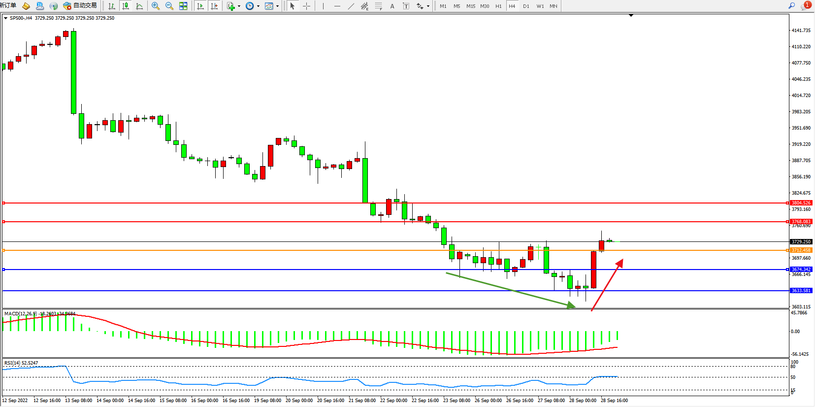标普500指数9月28日(周三)收盘上涨69.53点,涨幅1.91%,报3716.82点;标普指数6.5%的暴跌意味着美国经济衰退的可能性为92%,高于8月份的51%。其他资产也发出了类似的警告。目前贱金属的价格暗示经济衰退概率为96%,高于8月份的84%。