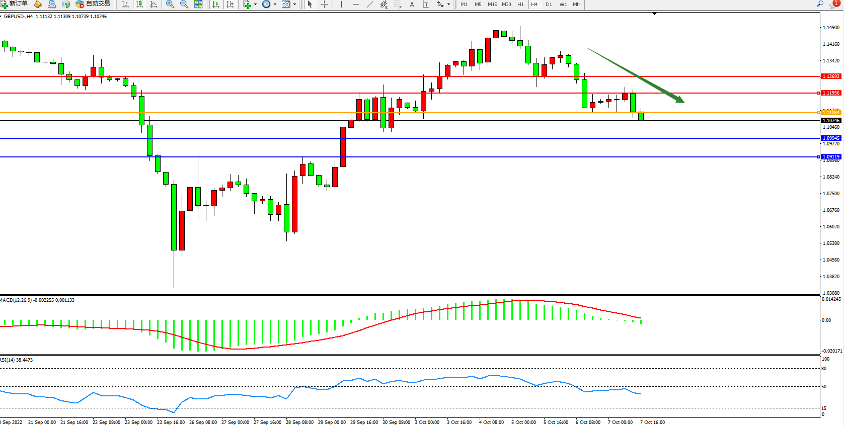 英镑美元GBPUSD ——4小时K线图显示: