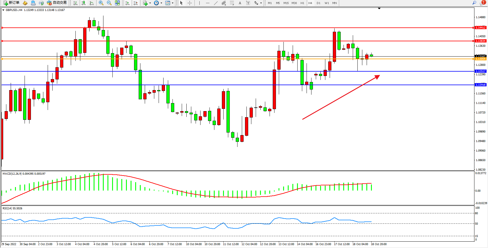 英镑美元GBPUSD ——4小时K线图显示:
