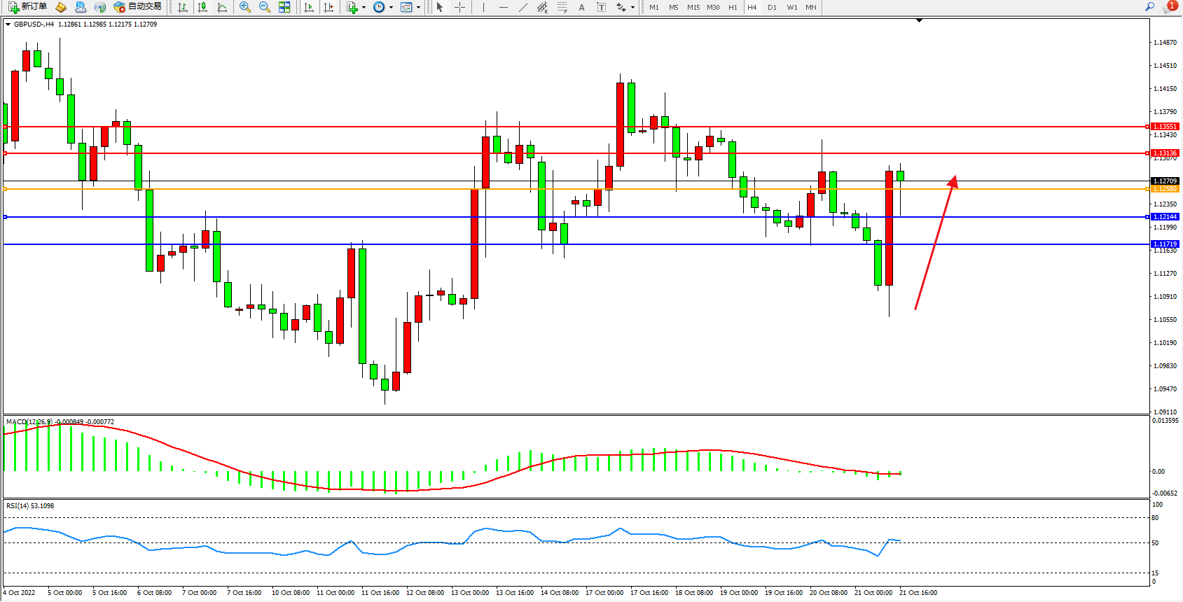 英镑美元GBPUSD ——4小时K线图显示: