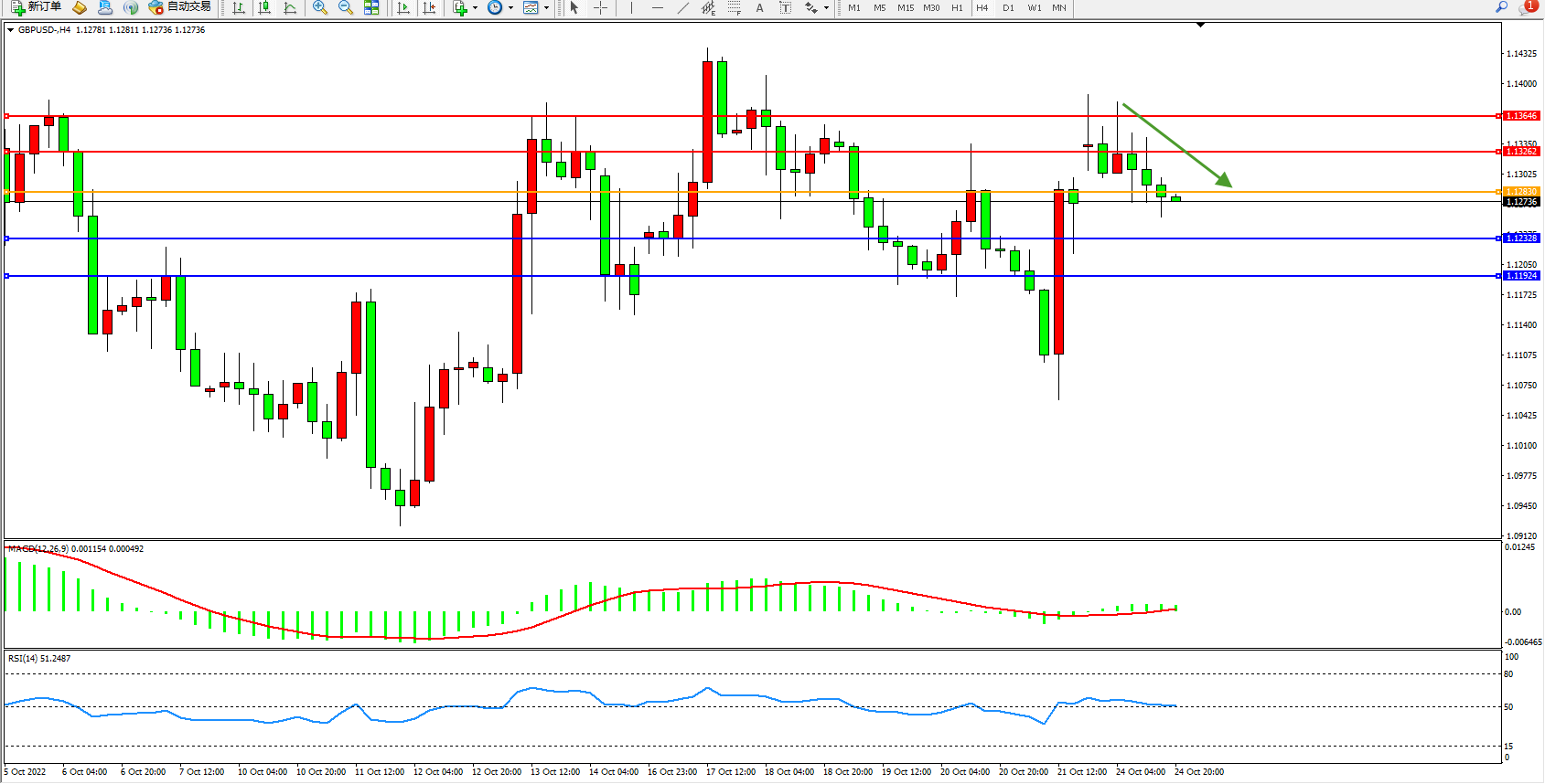 英镑美元GBPUSD ——4小时K线图显示: