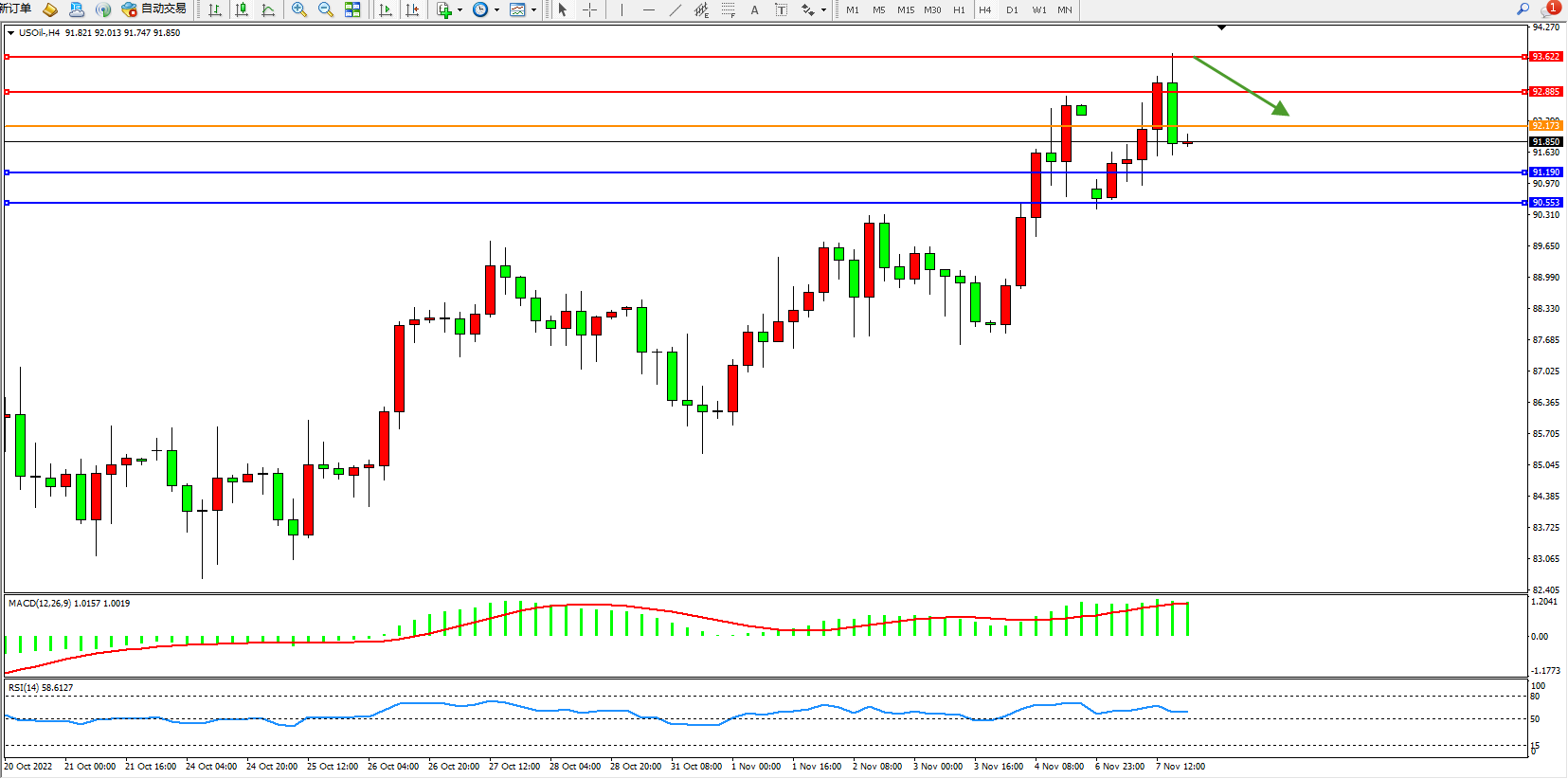 原油USOil——4小时K线图显示: