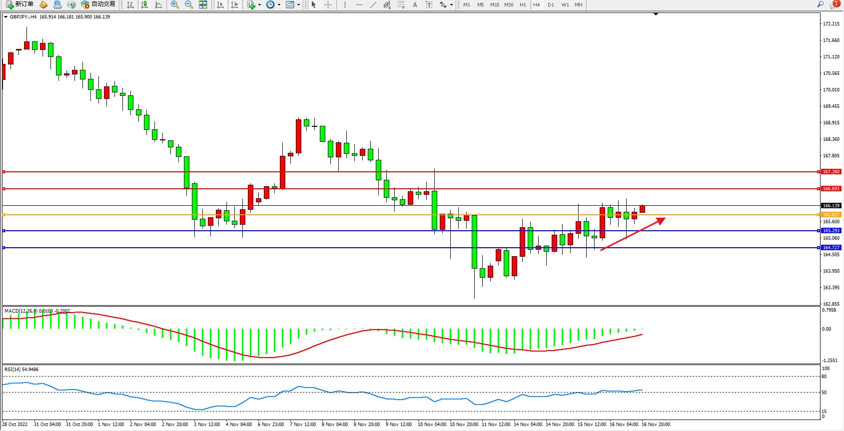 交易策略:165.827上方看涨,目标166.693、167.260