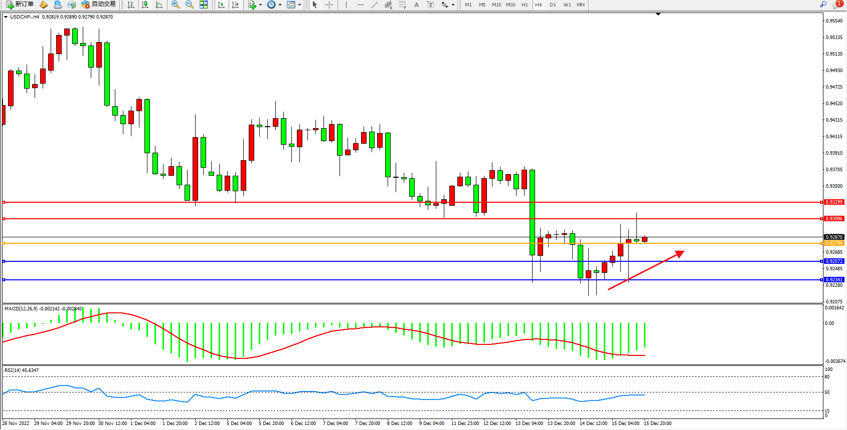 美元瑞郎USDCHF——4小时K线图显示: