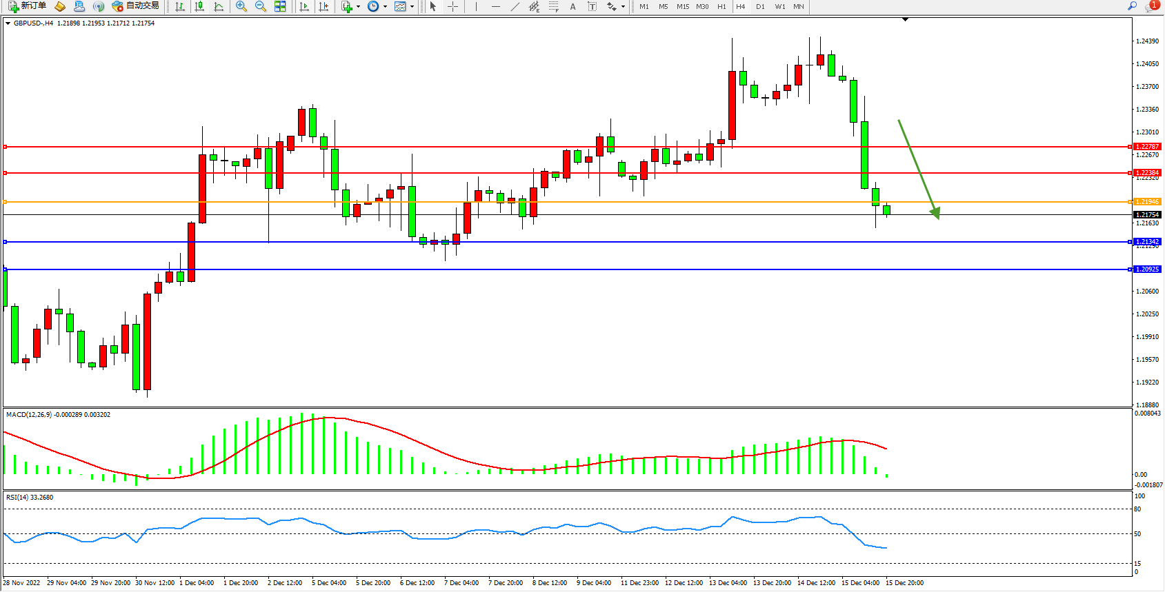 英镑美元GBPUSD ——4小时K线图显示:
