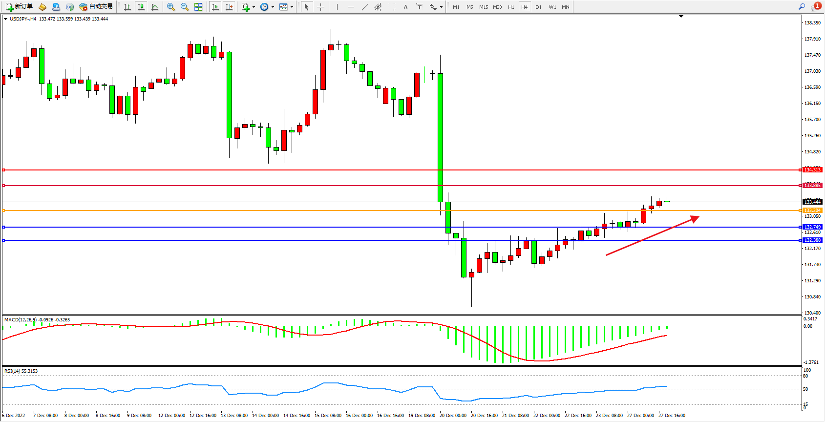 美元兑日圆维持133.444附近震荡,日本央行意外调整长期利率上限一直引起市场的密切关注,市场一度视之为日本政策收紧的先兆。此次超预期调整政策,具有强烈的稳定市场的“自救”意味;其次有利于缓解日本国债流动性问题。