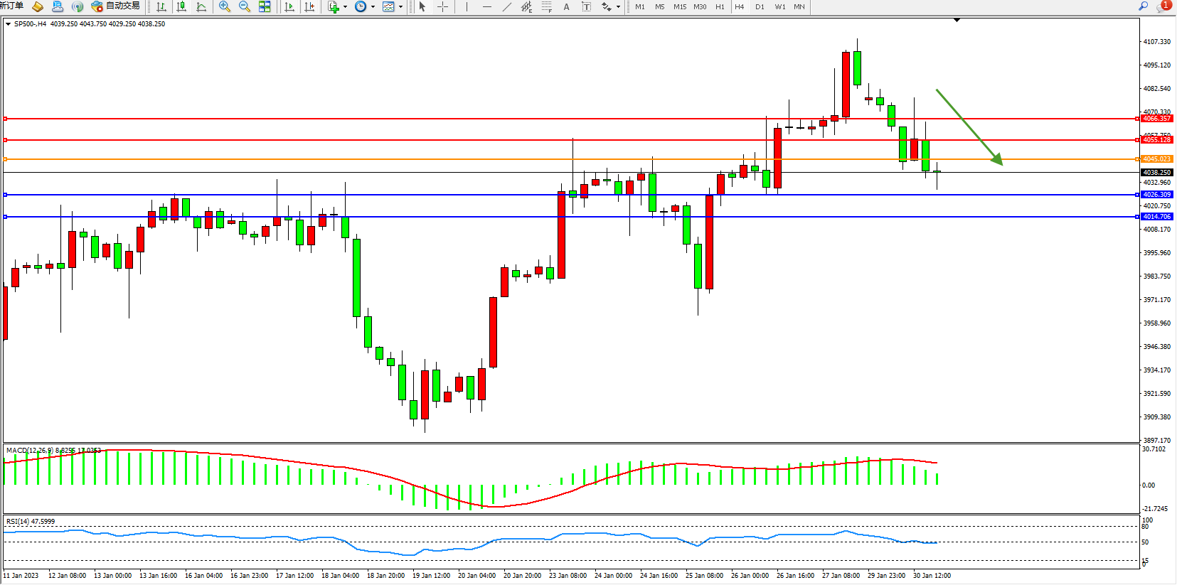 标普500指数1月30日(周一)收盘下跌51.66点,跌幅1.27%,报4018.90点;美联储将在接下来的两次政策会议上每次加息25个基点后暂停政策紧缩周期,但可能至少在今年余下时间里保持利率不变。联邦基金利率目前为4.25%-4.50%。