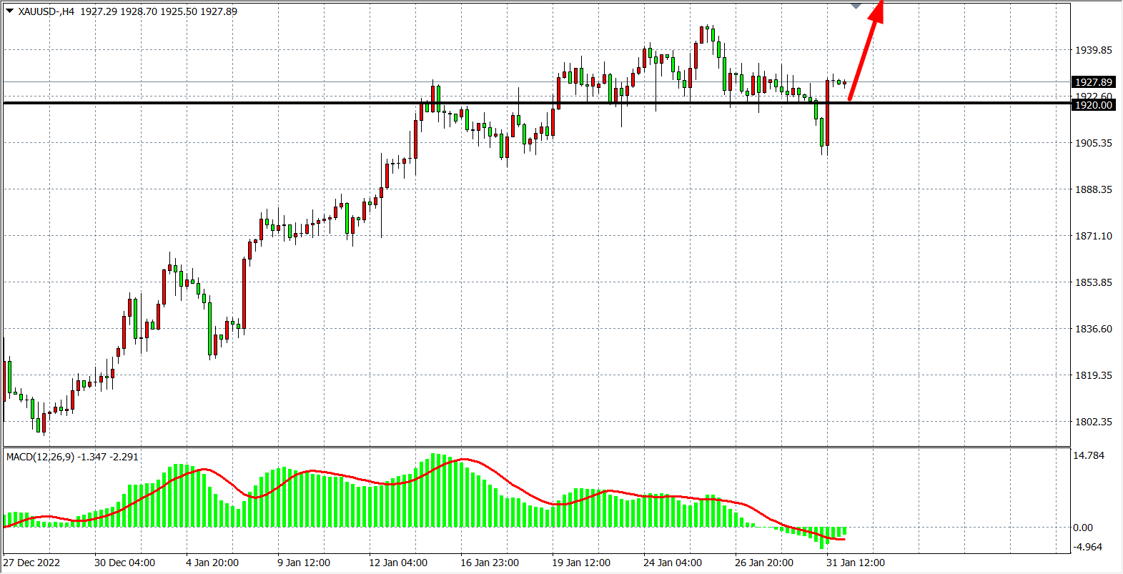 现货黄金XAUUSD 4小时图