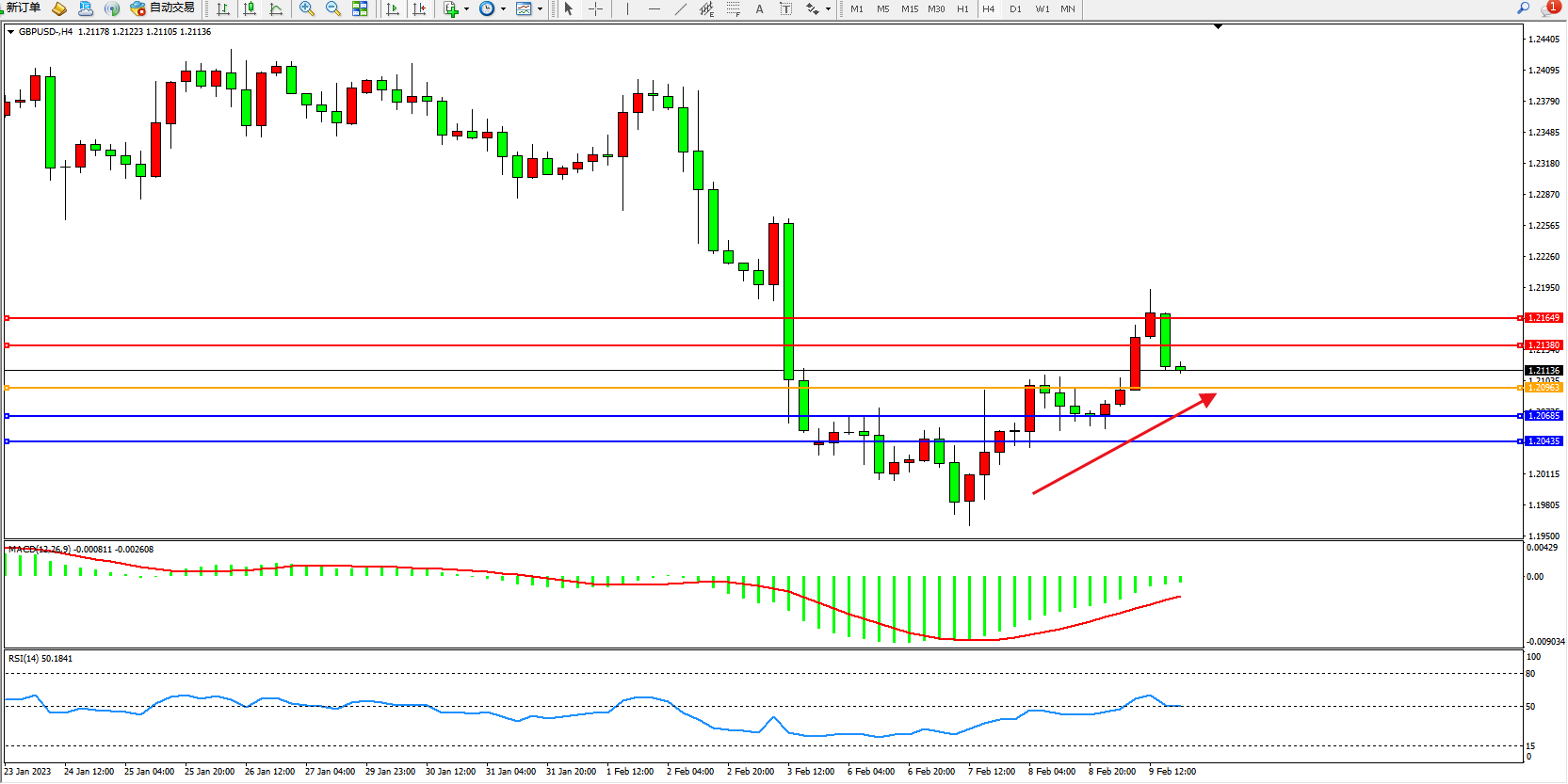 英镑美元GBPUSD ——4小时K线图显示:
