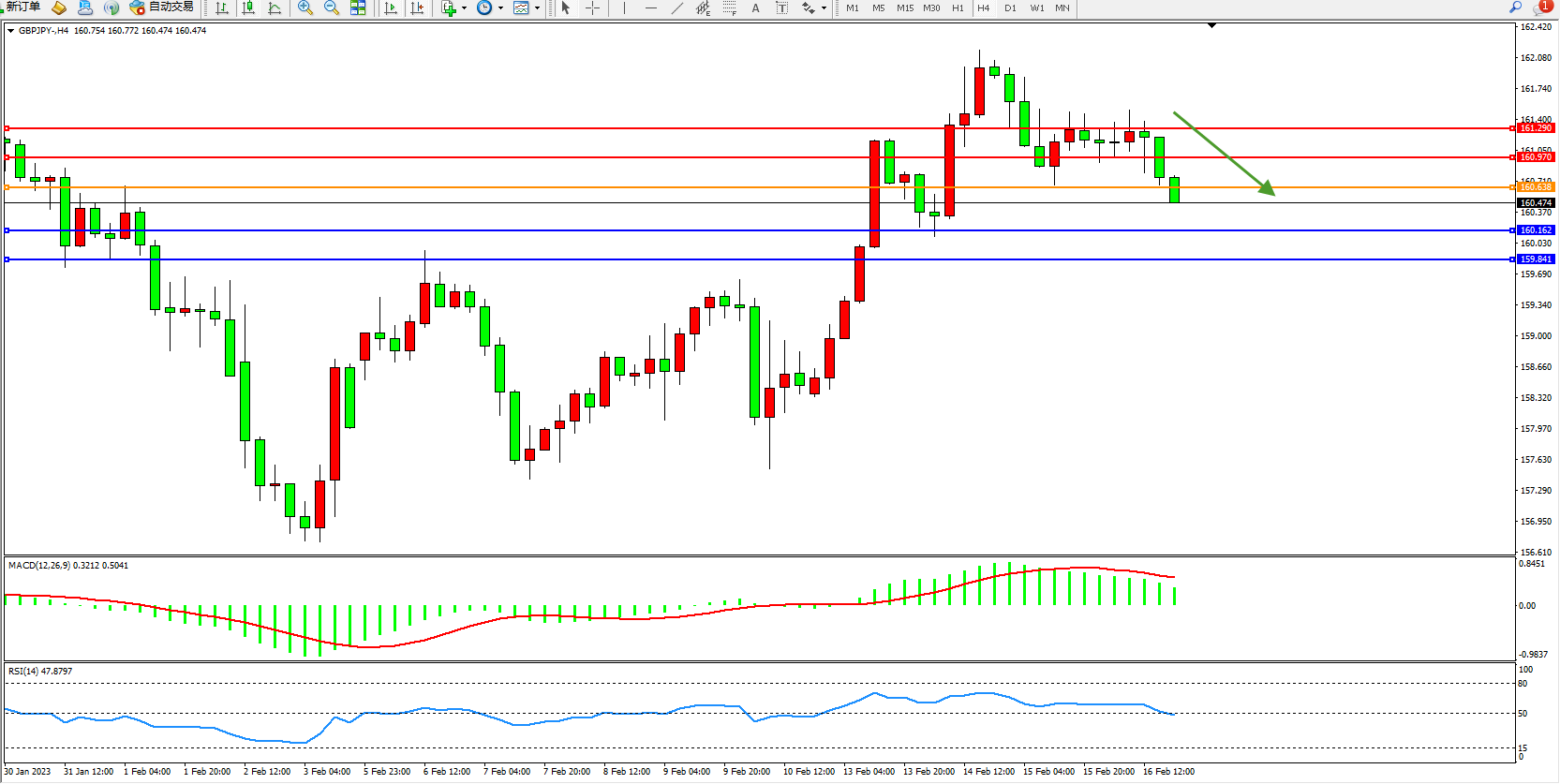 交易策略:160.638下方看跌,目标160.162、159.841