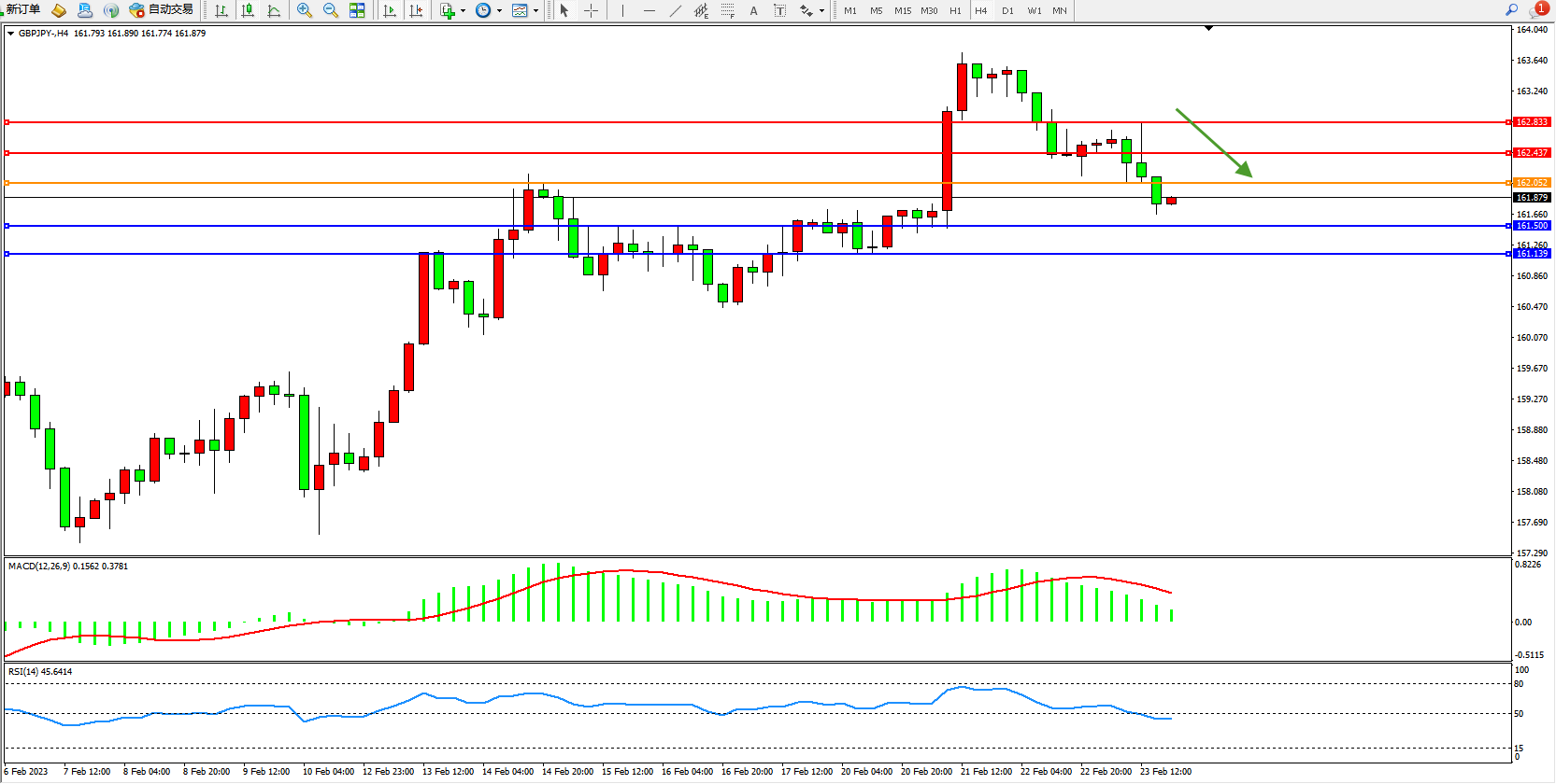 交易策略:162.052下方看跌,目标161.500、161.139