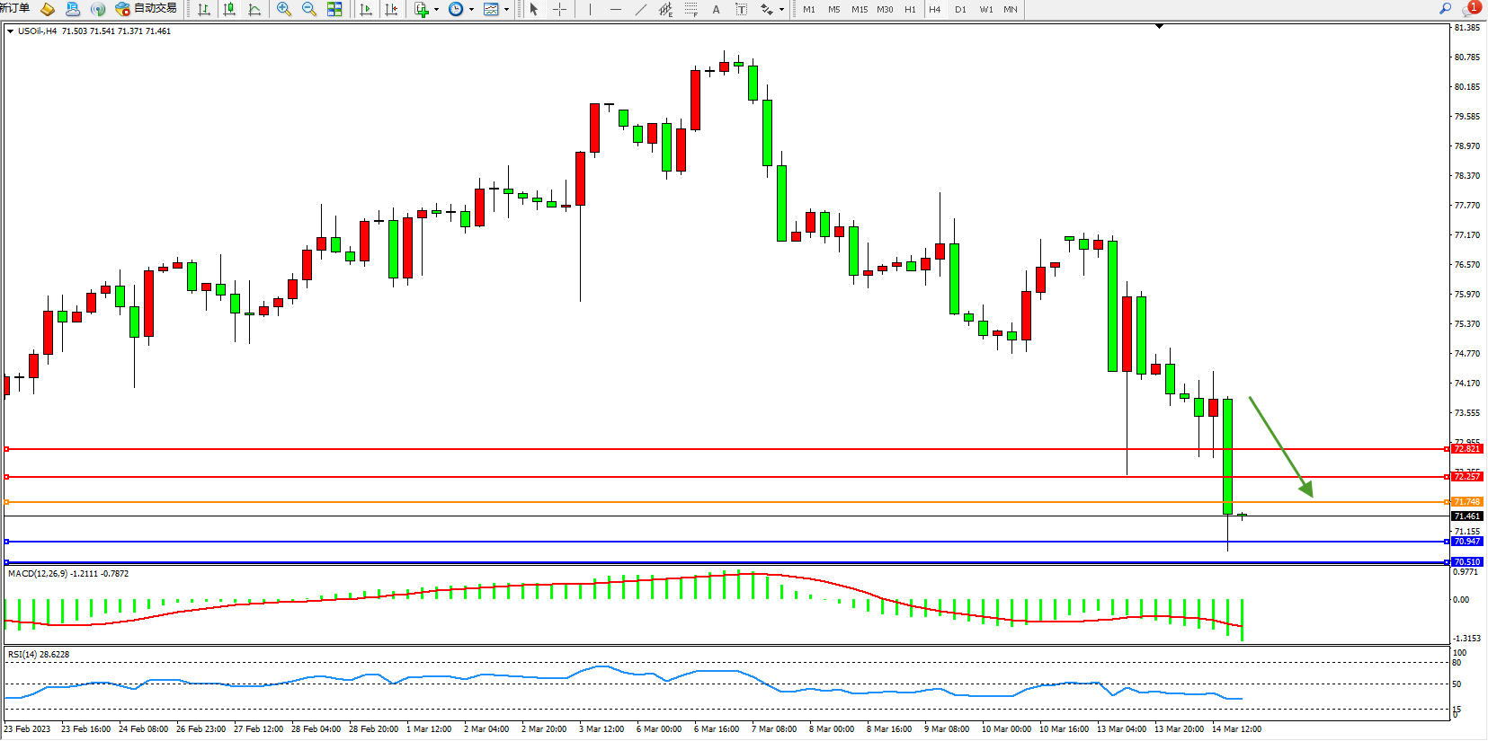 原油USOil——4小时K线图显示: