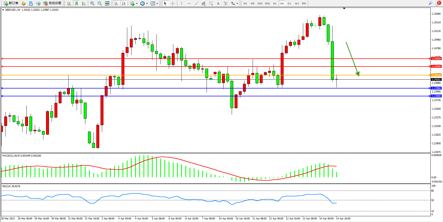 英镑美元GBPUSD ——4小时K线图显示: