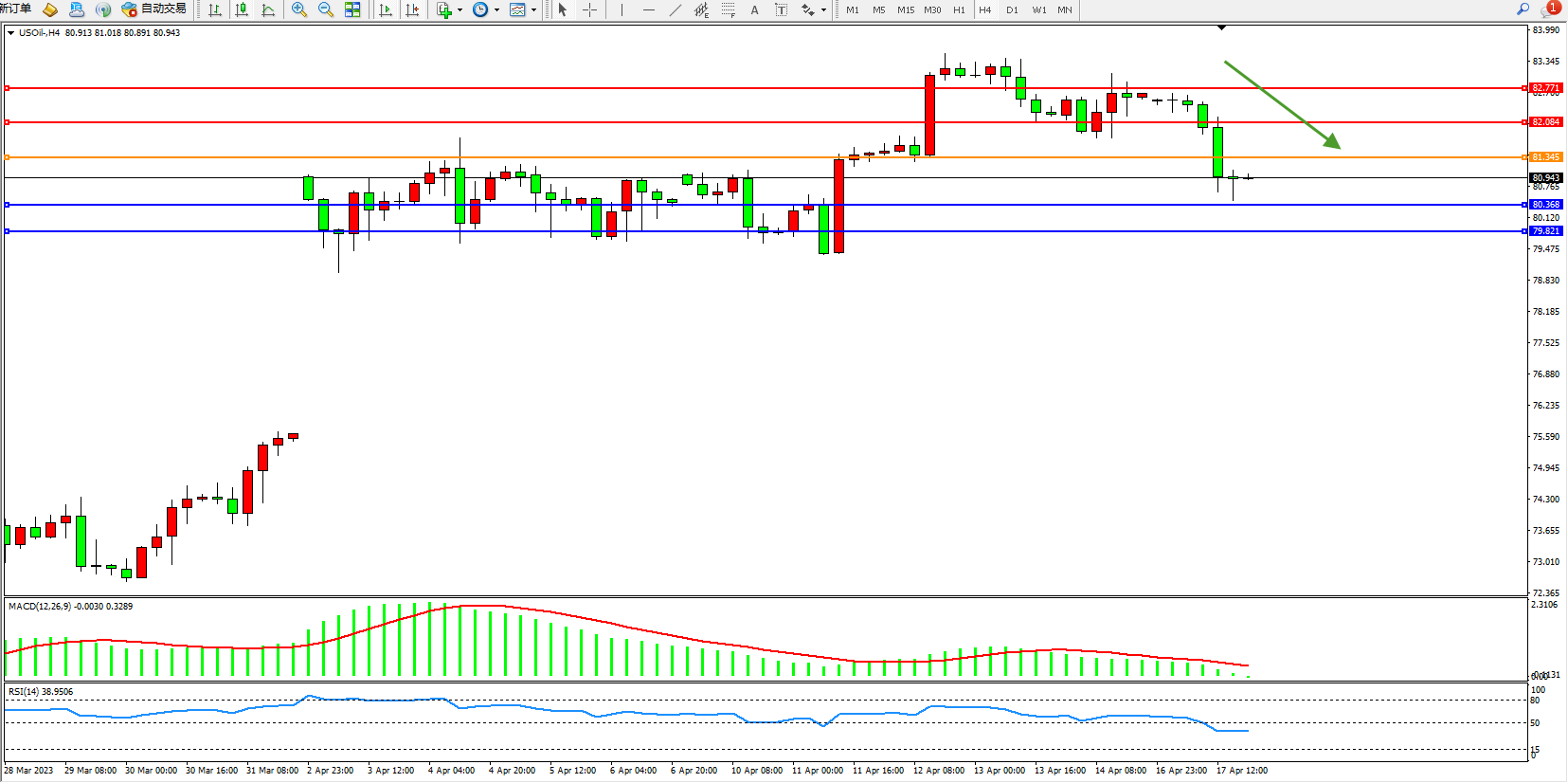 交易策略:81.345下方看跌,目标80.368 79.821