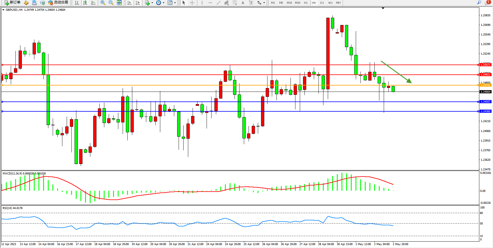 英镑美元GBPUSD ——4小时K线图显示: