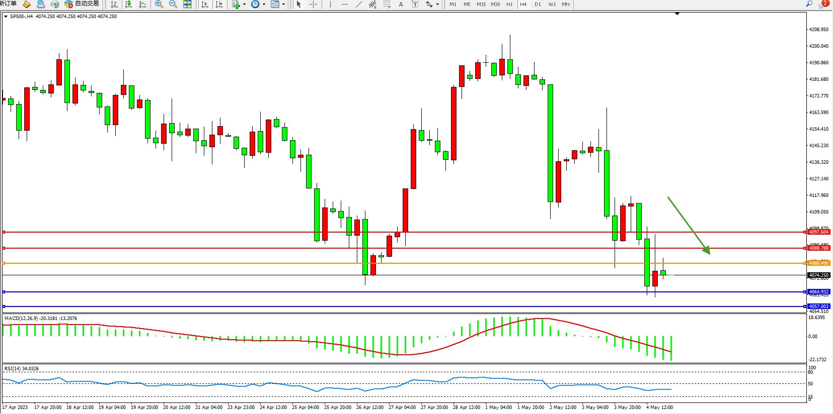 标普SP500——4小时K线图显示: