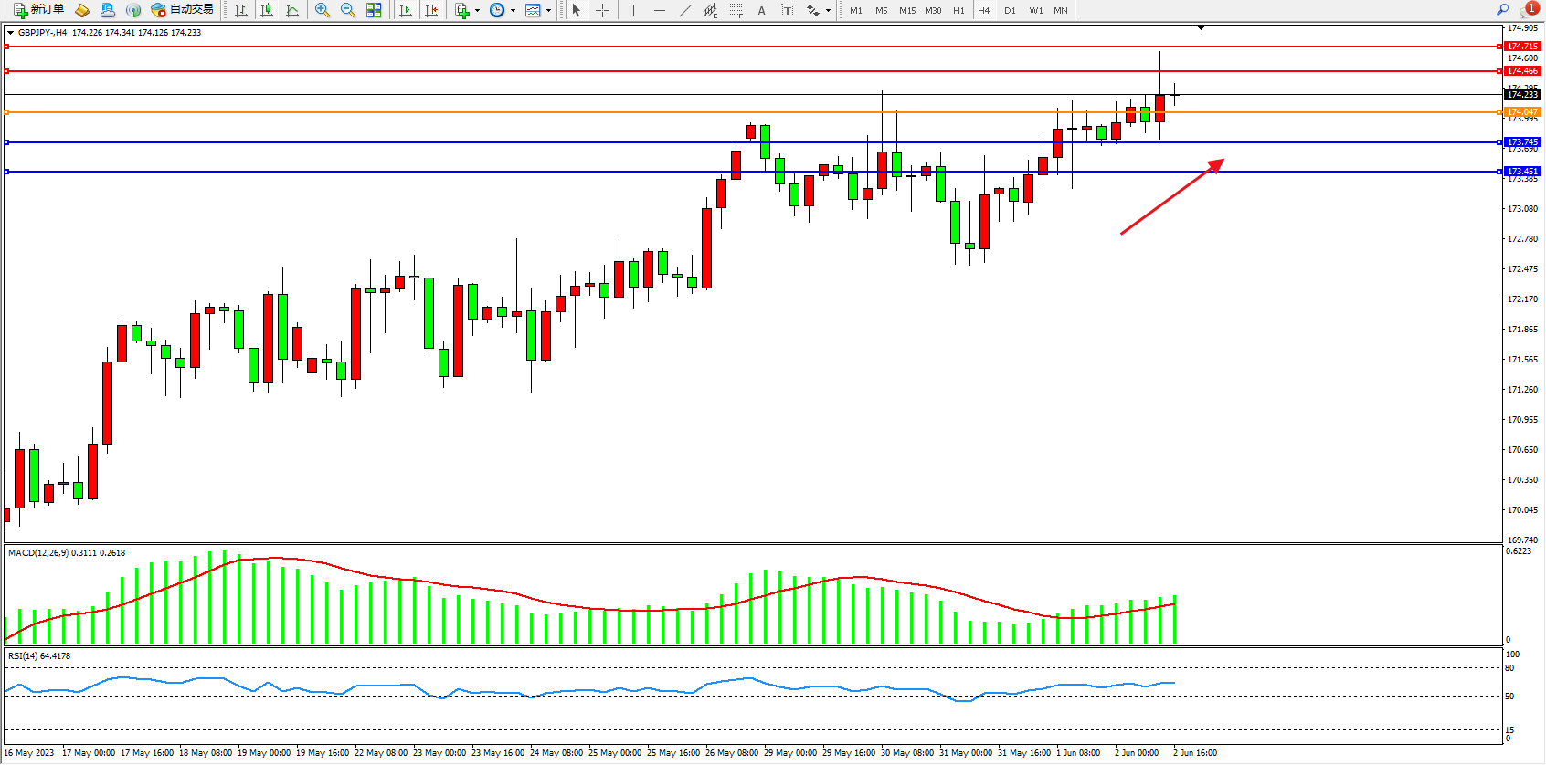 阻力位:174.466  174.715