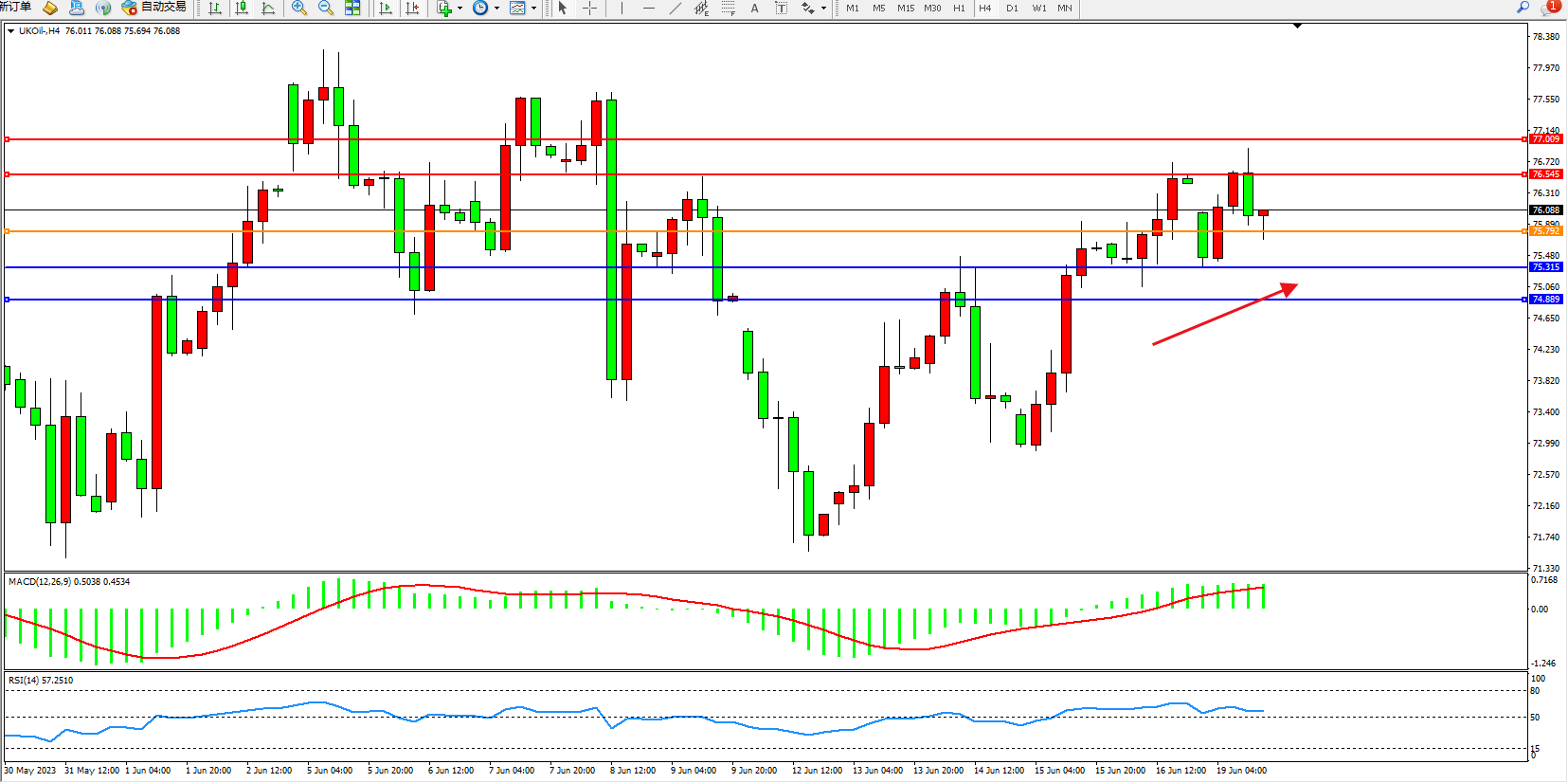 布油UKOil——4小时K线图显示: