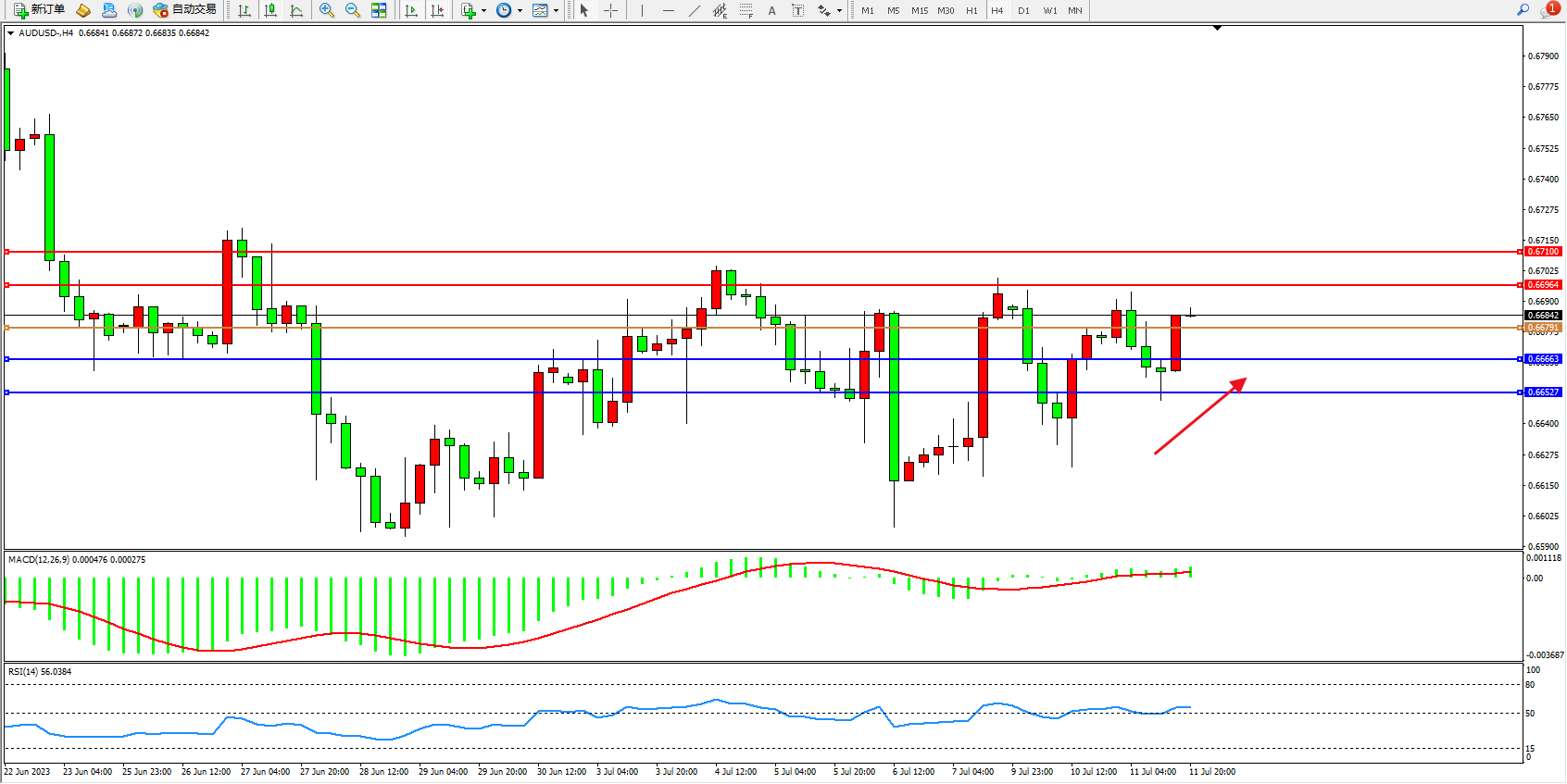 交易策略:0.66791上方看涨,目标0.66964  0.67100
