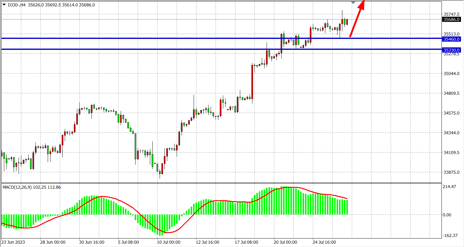 交易策略:35460 上方看涨,目标 35700 36000