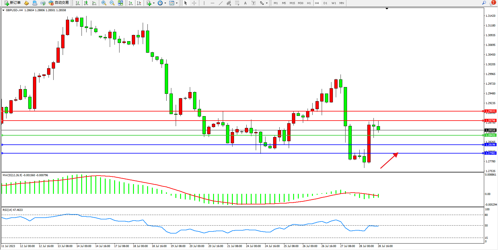 英镑美元GBPUSD ——4小时K线图显示:
