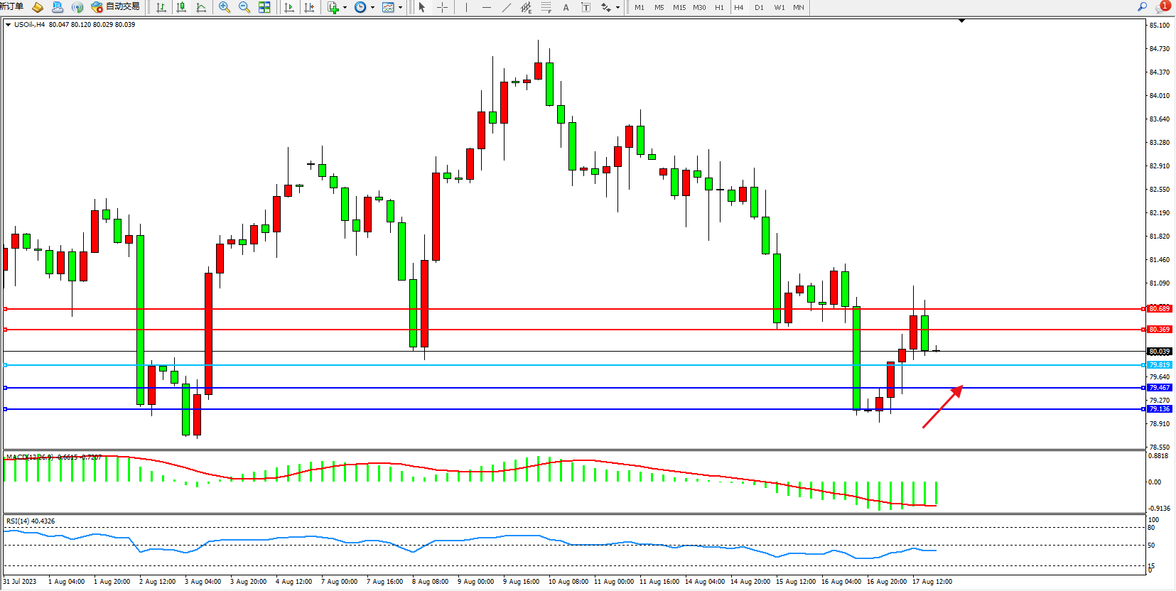 原油USOil——4小时K线图显示:
