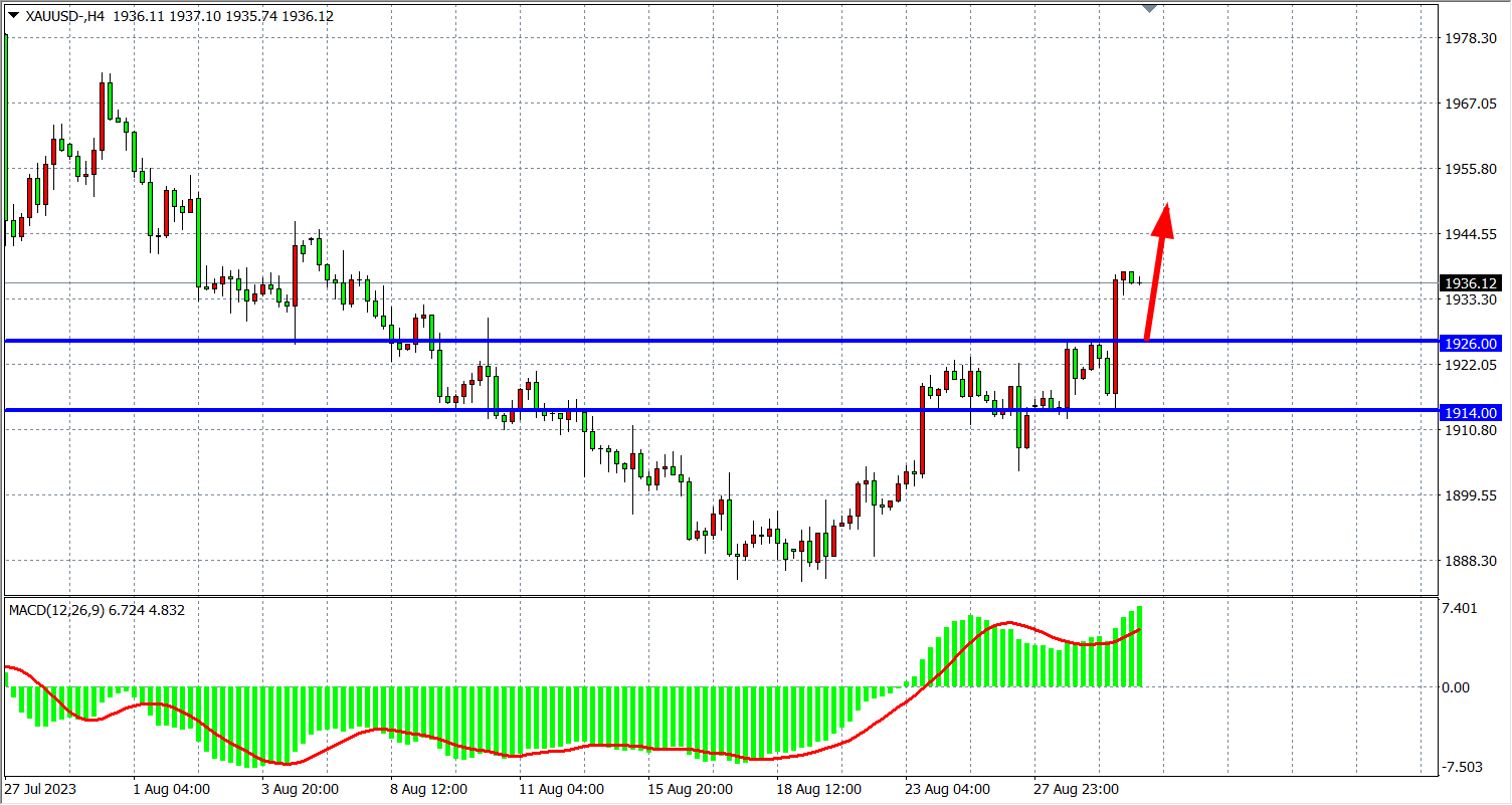 4小时图看,黄金在回调1914附近获得支撑延续上涨突破1930关口,MACD量能在零轴上放量,短线走势仍处多头,支撑上移1914-1926附近,阻力关注上方1945-1960附近。