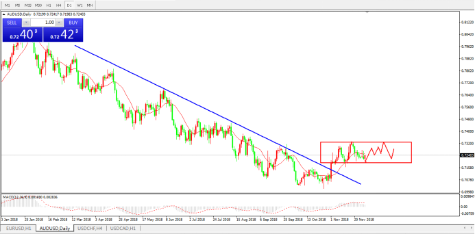 澳元兑美元延续区间整理