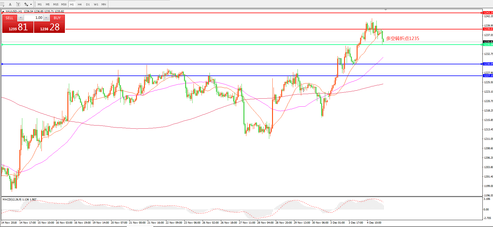 多空转折点:1235.00