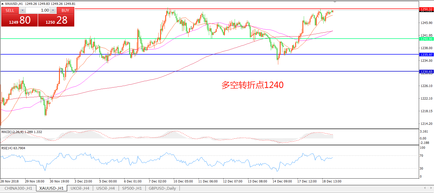 多空转折点:1250.00