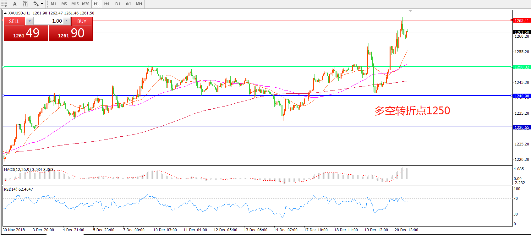多空转折点:1250.00
