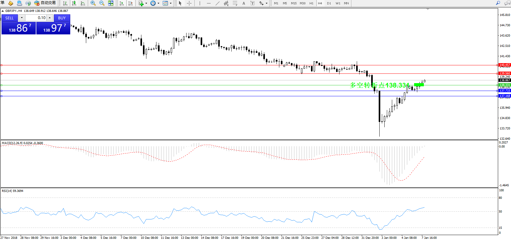 交易策略:138.331上方看涨,目标139.560、140.457